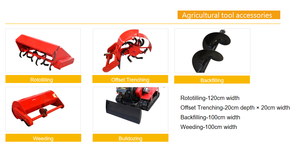 Trenching / Weeding / Backfilling / Bulldozing / Rototilling / Fertilizing / Crop Spraying / Seeding / Harvesting.